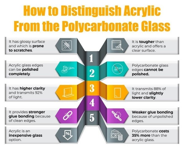 | Cost | Acrylic plastic is less expensive, more affordable than Polycarbonate plastic. The price of acrylic depends on the thickness of the material. | Polycarbonate has higher cost, as much as 35% more expensive (depending on the grade). |