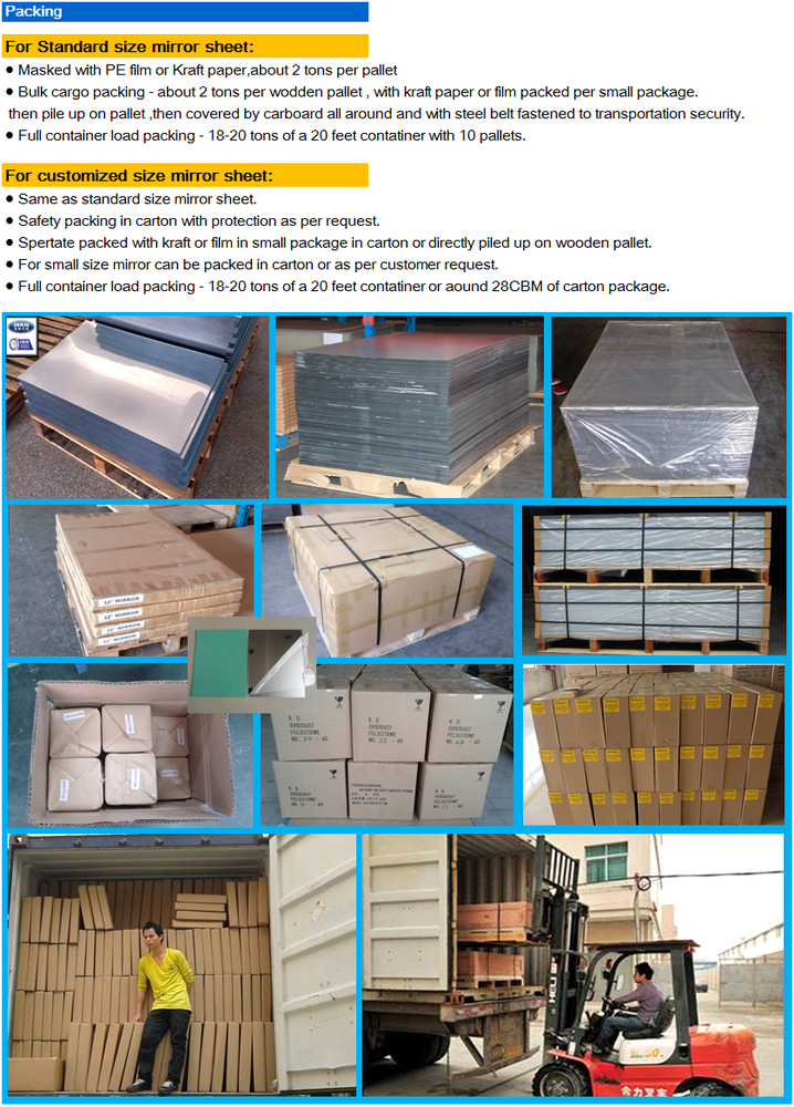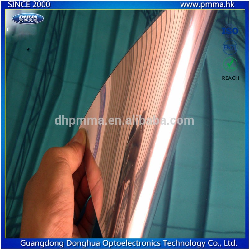 PETG mirror offers versatile fabrication properties with good impact strength,good design flexibility, and speed of fabrication,so it is Impact resistant and child safe. PETG mirror is supplied with poly film on one side, or with paper masking on one or both sides.