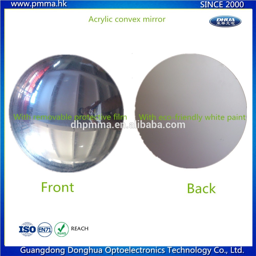 Acrylic/plexiglass convex mirror is 17 times stronger than glass, has excellent clarity, durability, is lightweight and weatherable.