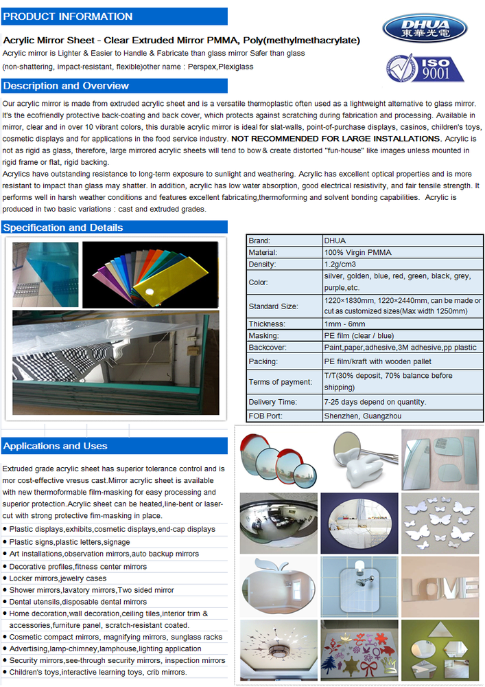 Strict quality control system and ecofriendly plexiglass mirror well received by customer of different industrial from all around the world.