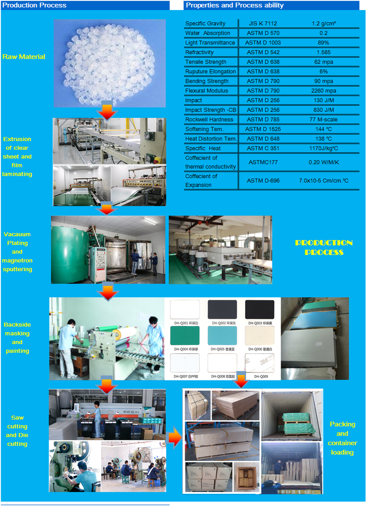Polycarbonate mirror is Lighter & Easier to Handle & Fabricate than glass mirror Safer than glass (non-shattering,unbreakable,extreme impact-resistant, flexible)