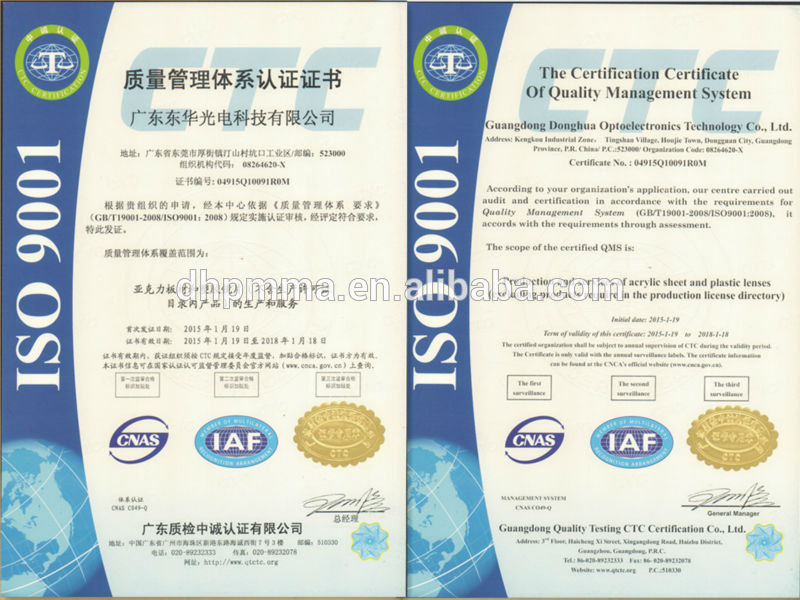 With 15 years' experience and processing technology in acryilc field, as a professional manufacturer of extruded acrylic sheet, plastic mirrors and acrylic crafts, Donghua has gained high reputation from both domestic and oversea customers.